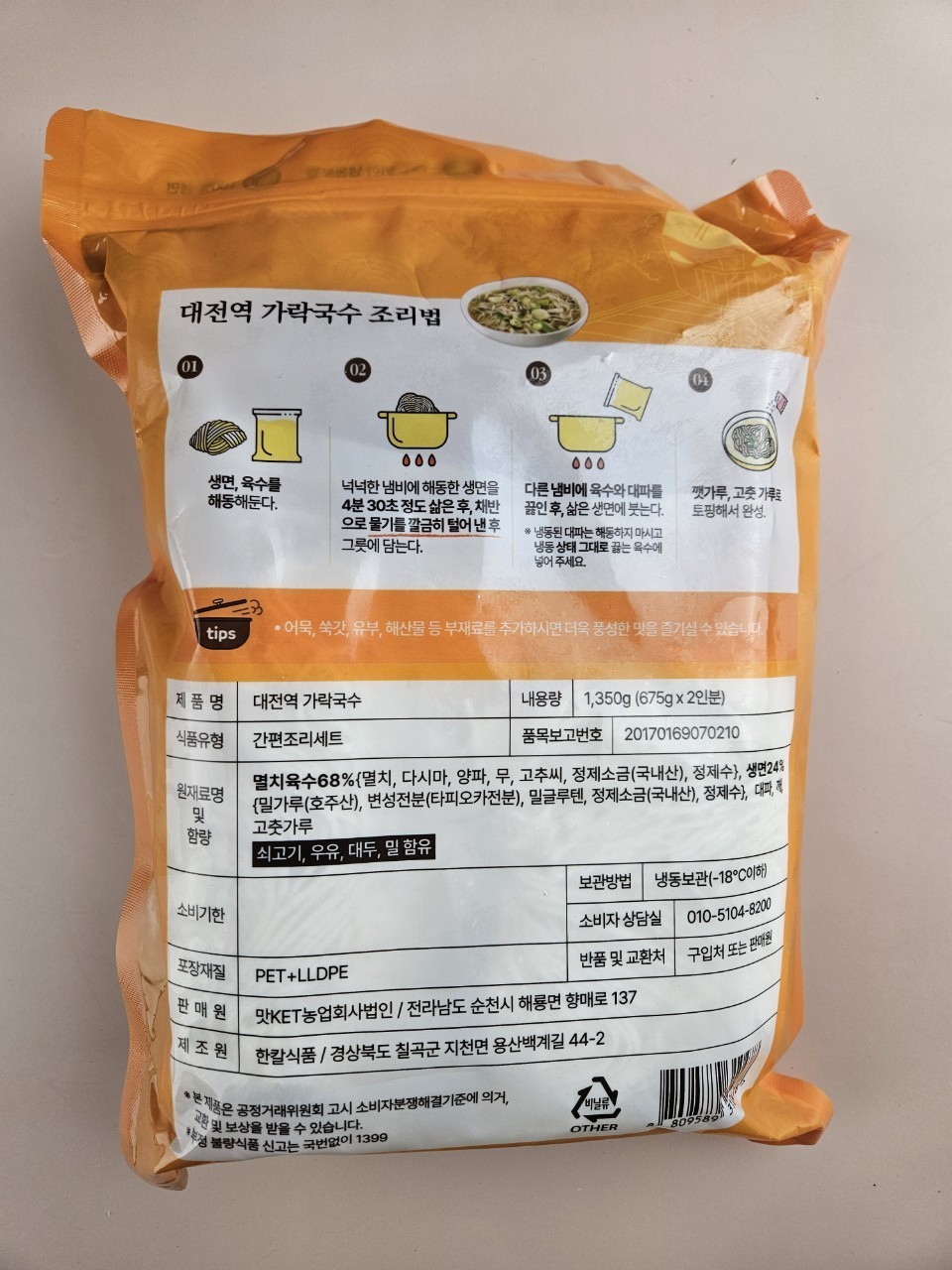 🍜 찐한육수 대전역 가락국수 1,350g(675gx2팩)