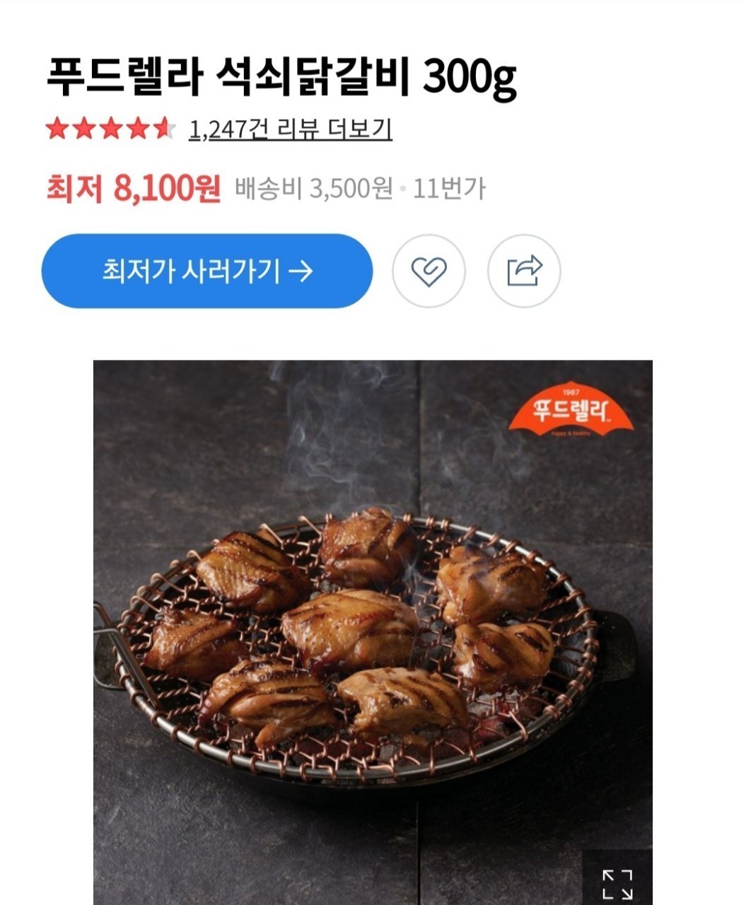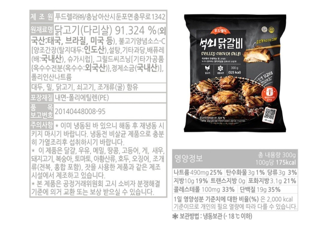 푸드렐라/마성의 맛 석쇠닭갈비(300g) 1팩